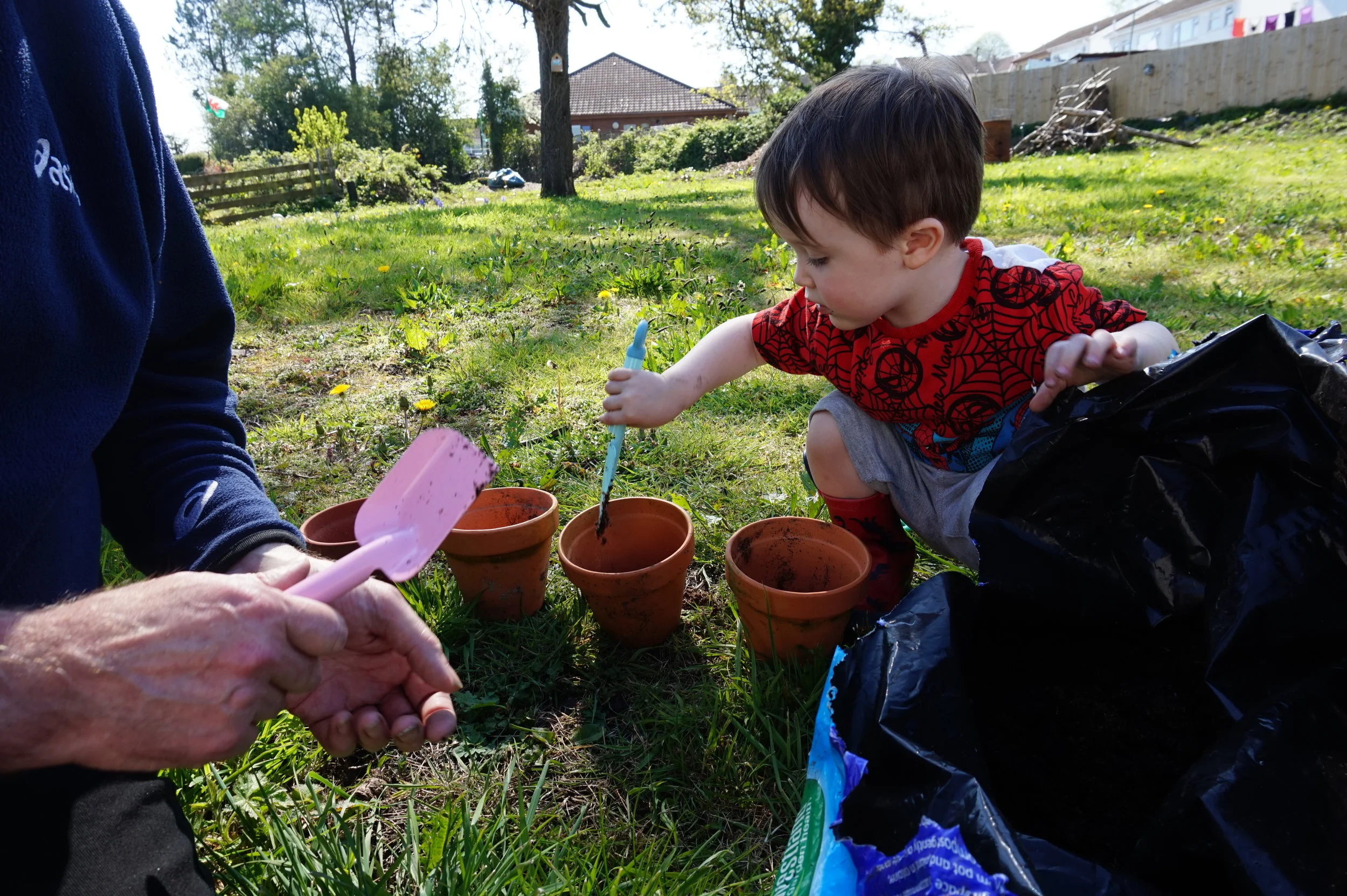 Rory loves to play in the dirt and help with the garden. So I bought him some small tools from Tiger which he loved using to help his granddad plant some seeds over the weekend. We also bought a Watering can attachment for a water bottle which he loves using, also from Tiger.